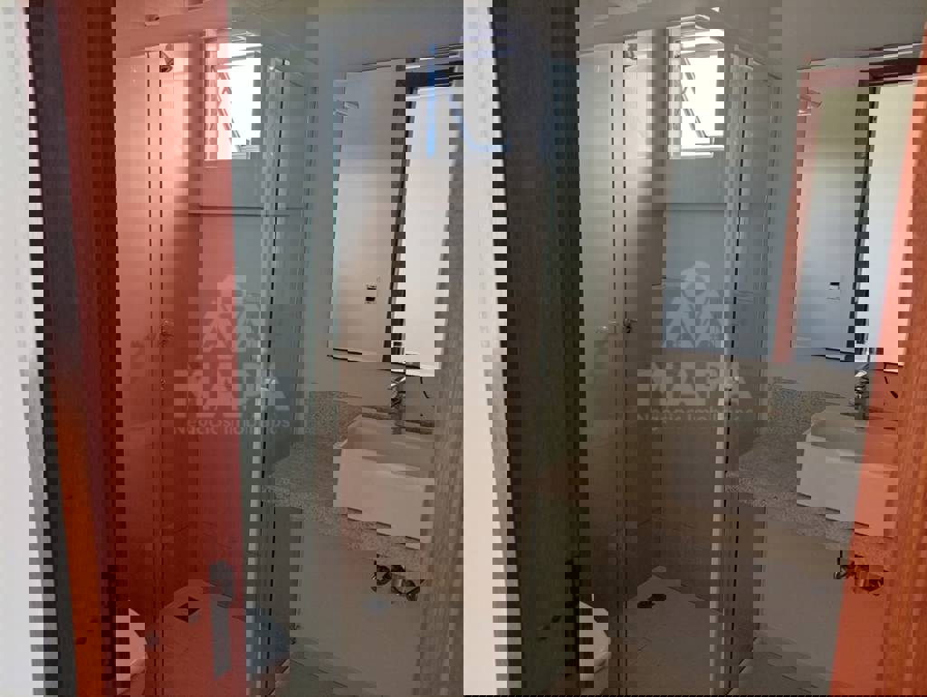 A unidade conta com 3 quartos, sendo 1 suíte, além de um banheiro social — ambos com box blindex. Os ambientes são bem distribuídos e possuem teto rebaixado em gesso, trazendo um acabamento moderno.