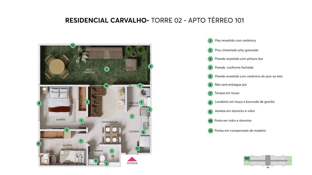 natural e opções entre 36,74 m² e 41,83m² de área privativa.
