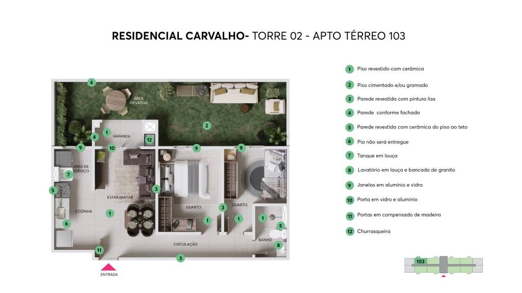 Ambientes bem planejados, com acabamentos de qualidade, ventilação