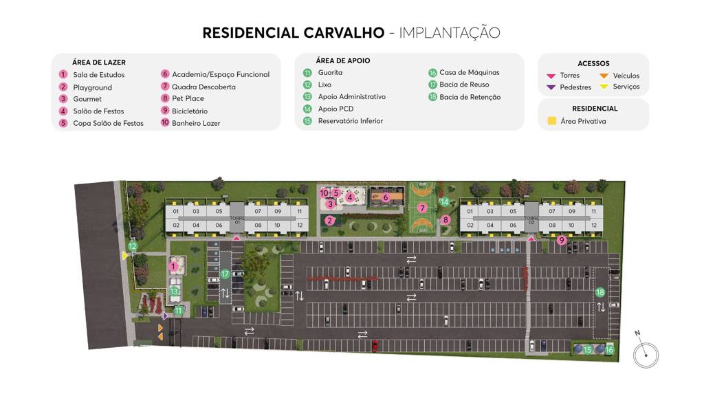 O condomínio oferece estrutura completa para o seu bem-estar