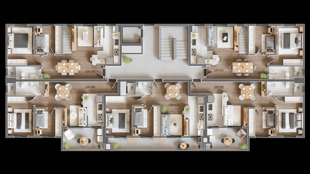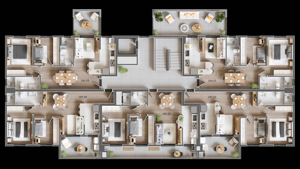 Com metragem de 55,23 m² a 111,09 m², o Monte Civetta entrega espaço, funcionalidade e um toque de sofisticação.